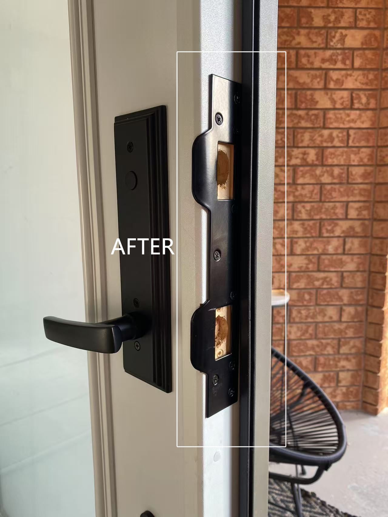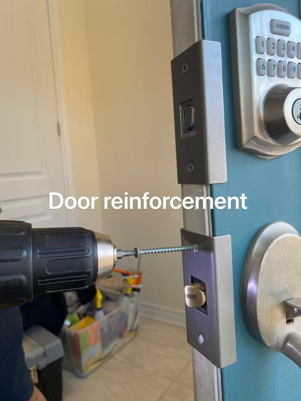 Upgrade to a large steel strike plate, with 6 to 8 heavy duty steel screws, making it extremely resistant to kick-ins or brute force.