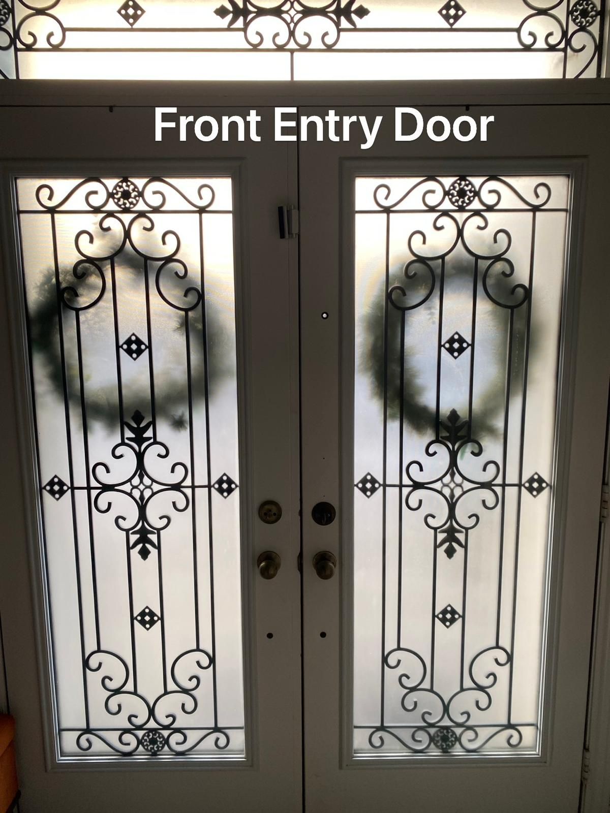 We converted this residential, builder-grade door into a highly secure door by making strategic upgrades that prevent anyone trying to kick it in or using pry bars. In addition, we applied window security film to secure the glass inserts, which were sealed with commercial grade adhesives to the frame.